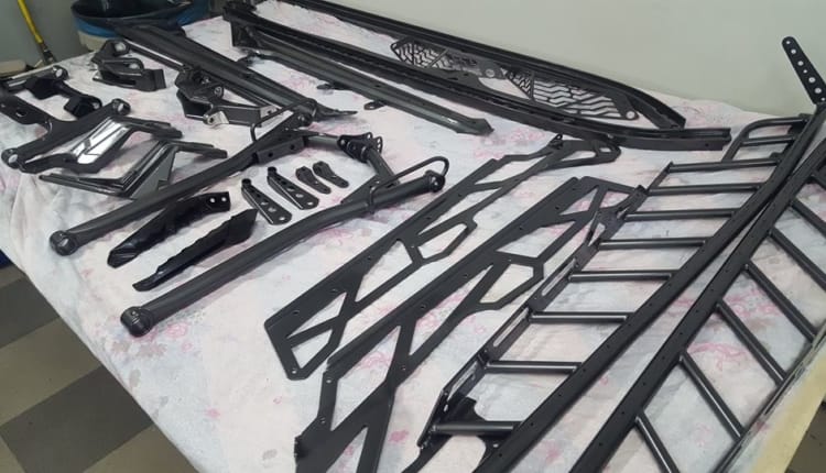 Idag hämtade jag en hel drös med delar från pulverlack. Patrik ( ja han heter också Patrik) på Pulverteknik i Kungälv har lackat en massa delar i mörgrå metalick och sen lagt klarlack ovanpå. Smidigt att ha nära till lackeraren så jag kunde hämta delarna samma dag som dom lackades.
