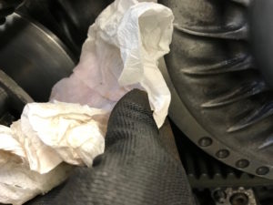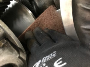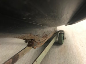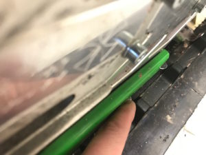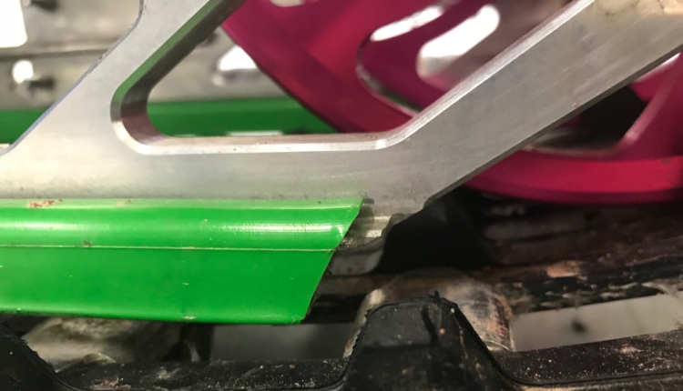 När skotern ändå är upplyft bak passar du på att inspektera hur mycket det är kvar av slidsen. Kolla även att alla mattclips sitter kvar.