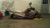 Låter lovande ut förutom skidtrycket för de måste va svårkört. Kan du flytta ner boggiskenan i framkant boggi så hjälper det. Man ser bandsatser som ligger i hårt fram i boggi och mattan är i luften bak som en watercrossinställning på snöskoter. Jag tror på sådan isntällning för då gör de mindre att mattan är lång speciellt bra på hårt underlag. Man ser att bergshästarna har svårt att lyfta skidan så en sådan typ watercrossinställning skulle även ge mer rullebenägenhet och mer lättsvängd hoj.